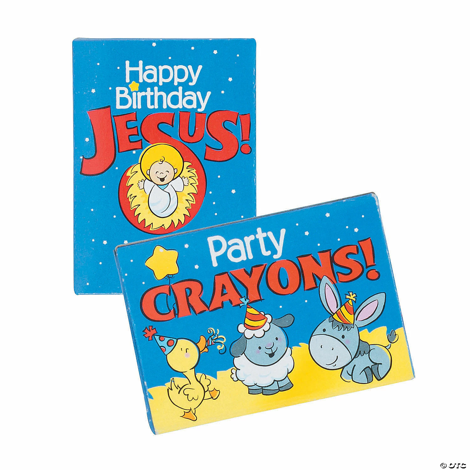 Looking for perfect stocking stuffers and Christmas giveaways? These Happy Birthday Jesus Crayons are perfect for church groups and Sunday Schools to give away to kids in Christmas goody bags. Each box features images of baby Jesus and celebrating barn animals and includes six colors of crayons. Wax. (4 dozen per unit) 2 1/2″ Safe and non-toxic. Conforms to ASTM D-4236. ยฉย OTC
