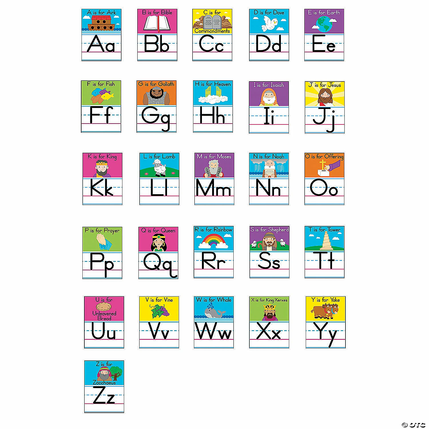 Combine religion and academics in your classroom décor with this ABC’s of the Bible Classroom Border! Each letter of the alphabet has its own card, which features the letter in upper and lower case, as well as a picture of a faith-based item starting with that letter. Line up this border along a wall in your Sunday School classroom or VBS classroom. Cardstock. (26 pcs. per unit) 8″ x 10 1/2″ © OTC