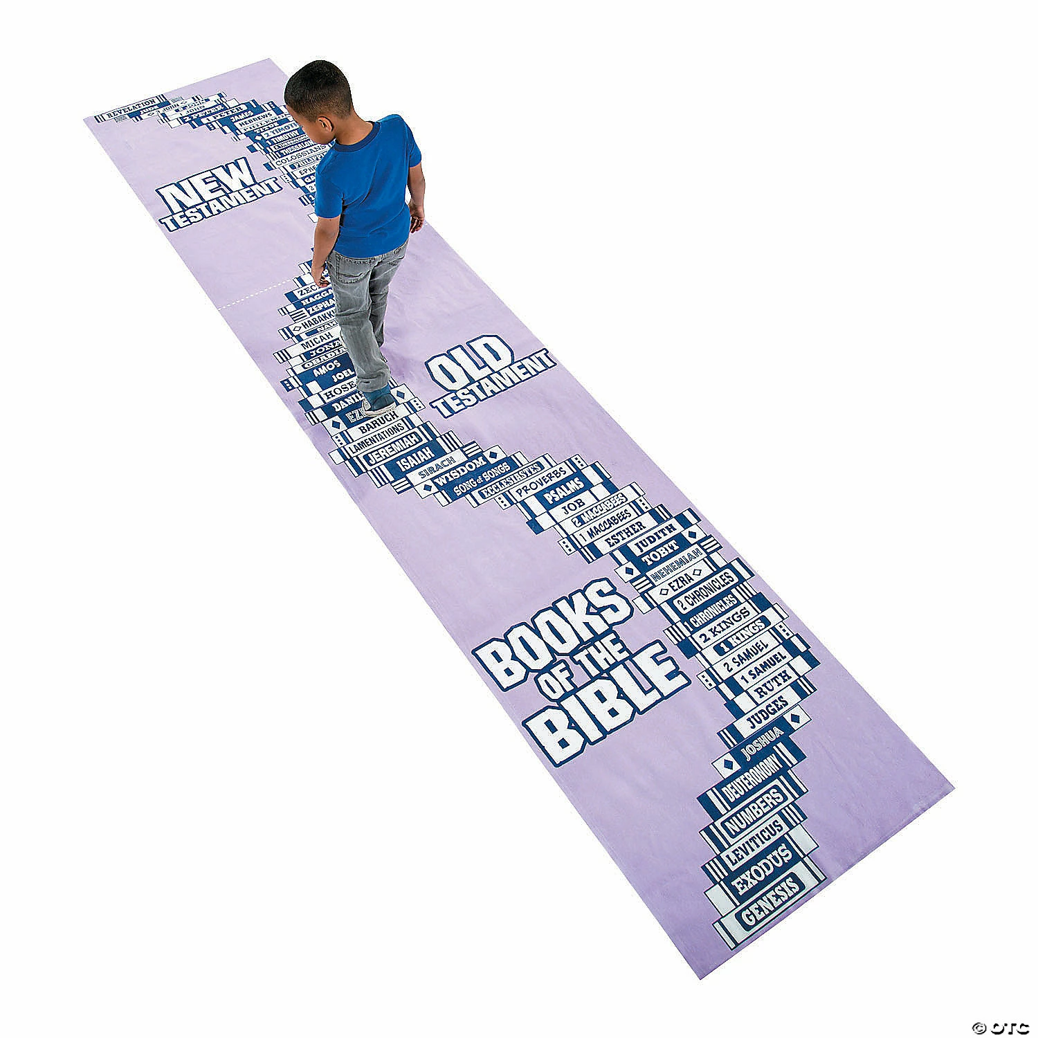 This Catholic Books of the Bible Aisle Runner is the perfect teaching tool for Sunday School and Vacation Bible School. Set up your own game to help students learn the books of the Bible and have fun at the same time! Nonwoven polyester. 3 ft. x 13 ft. 9″ © OTC
