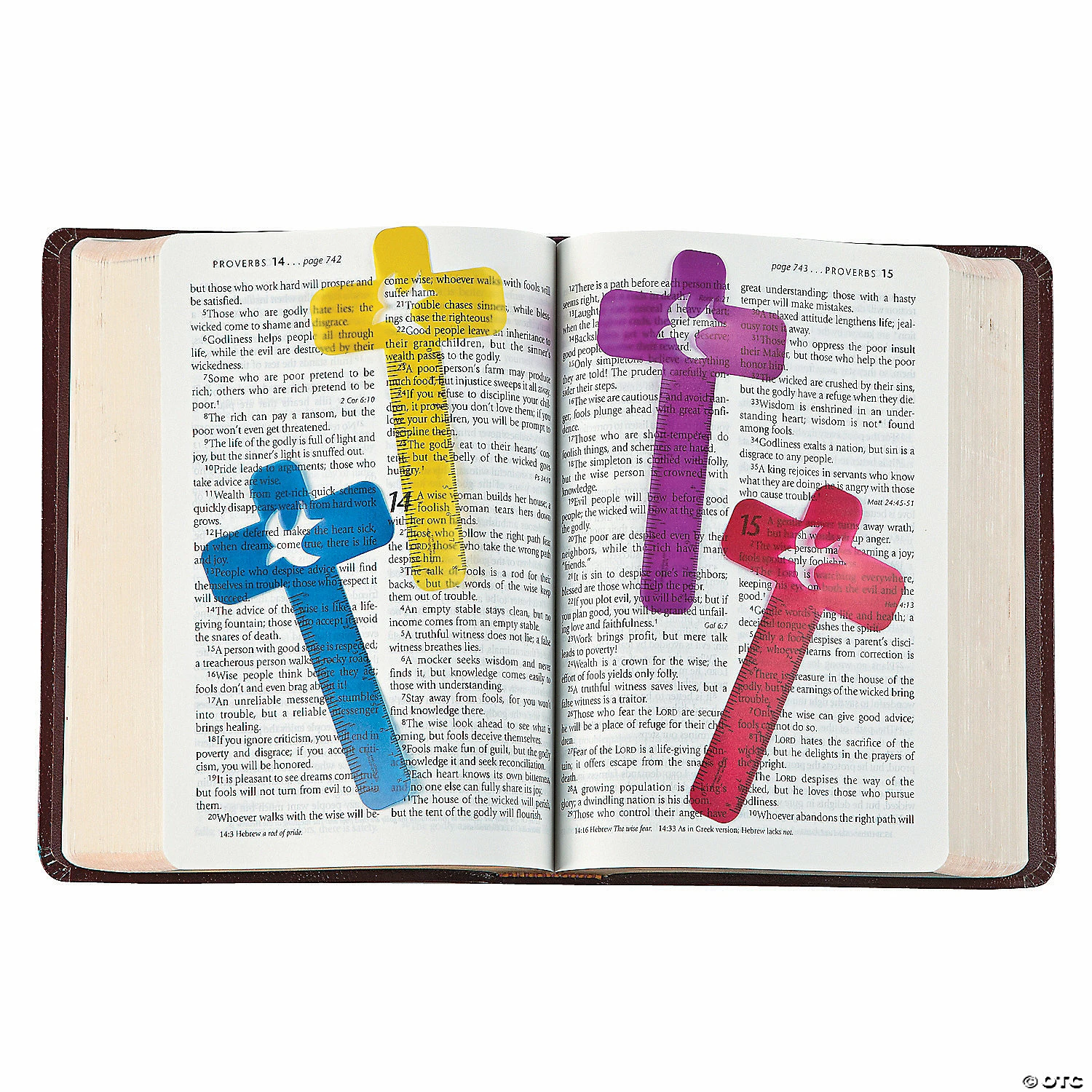 These Cross-Shaped Ruler Bookmarks feature rulers printed in inch and centimeter markings, are transparent and each have a dove cut-out to commemorate the Holy Spirit. Appropriate for all ages, the brightly-colored book markers make the perfect tool for use in Sunday School class, VBS or during adult Bible study. Each 5″ cross-shaped bookmark is brightly colored and has a dove design. Please note the dove is perforated and can be carefully punched out. The cross bookmarks may be stuck together, but with a gentle touch they will come apart. (4 dozen per unit) Β© OTC