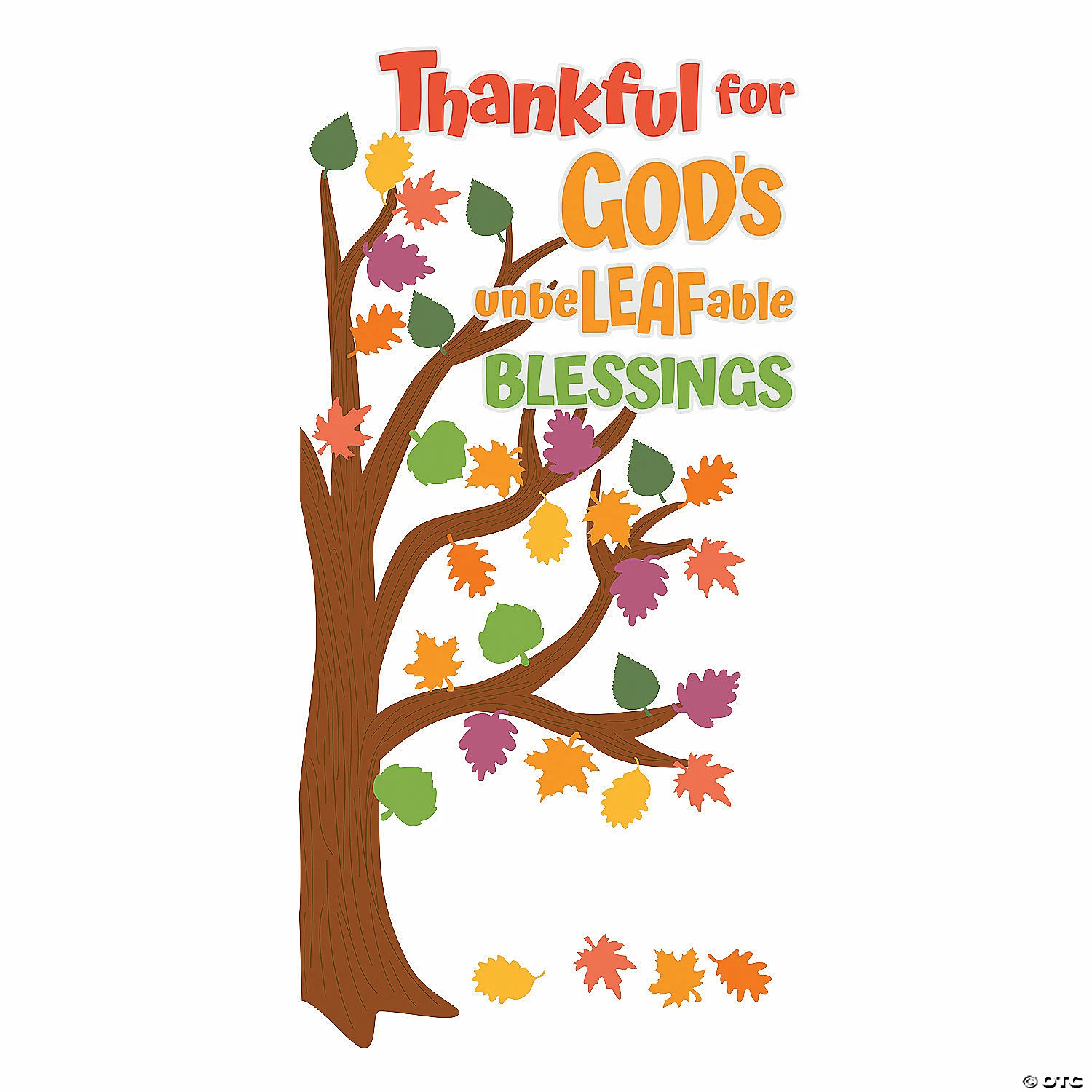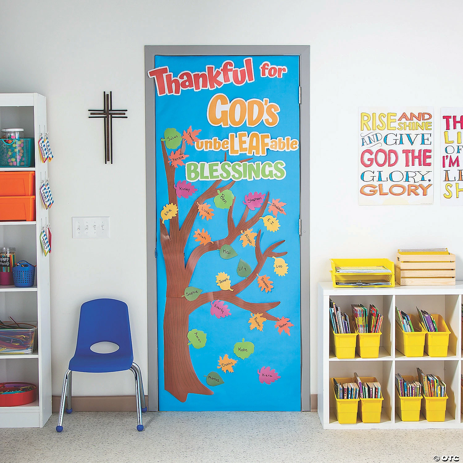 Religious education class students count their blessings with each falling leaf on this interactive door decoration project for schools and Sunday School classrooms. Each leaf is blank so that kids can personalize it according to their favorite things — from the Bible to dinosaurs—and celebrate the season of Thanksgiving. Includes 35 blank cutouts. Cardstock. (46 pcs. per unit) Pieces, 3″ – 26″; assembled, 3 ft. x 6 ft. Simple assembly required. © OTC