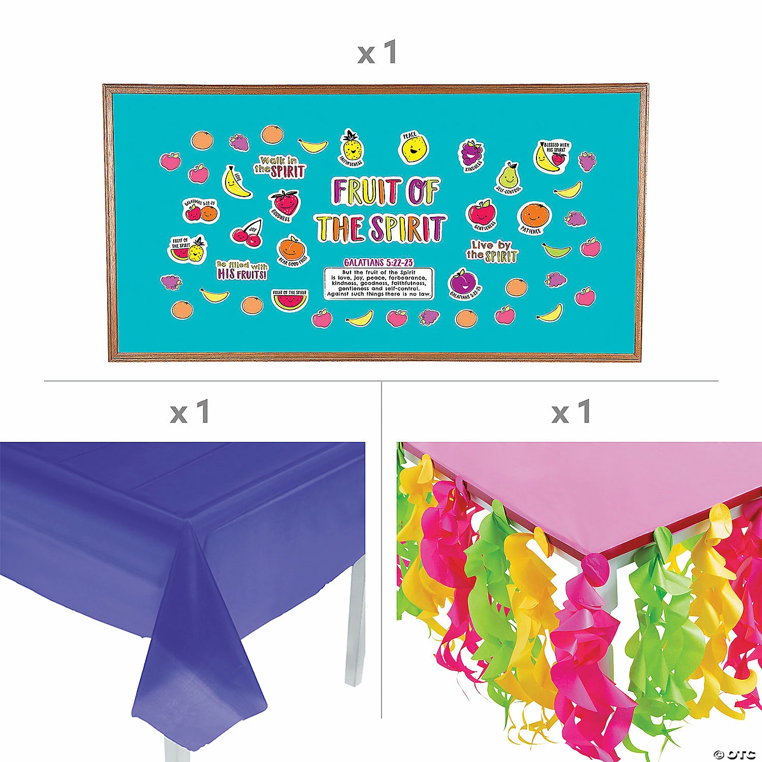 With so many goblins and spirits roaming around on Halloween, it’s better to recognize the most important spirit: the Holy Spirit! This colorful trunk-or-treat kit celebrates the Fruit of the Spirit and puts a faith-filled spin on a Halloween activity. A great choice for a church-sponsored trunk-or-treat event, this kit will also certainly stand out at any faith-filled trunk-or-treat event! (60 pcs. per unit) Assortment may vary.Includes:• 53-Pc. Cardstock Fruit of the Spirit Bulletin Board Set (Includes 30 blank cutouts. 3 1/2″ – 19 1/2″ x 4 1/2″ – 9 1/2″)• 1 Plastic Purple Tablecloth (54″ x 108″ Thin, slightly transparent. Disposable.)• 1 Tissue Paper Luau Swirl Table Skirt (9 ft. x 26″)• 4 Tissue Paper Tutti Frutti Fruit Honeycomb Hanging Decorations (10″ Simple assembly required.)• 1 Tissue Paper Large Pineapple Honeycomb Decoration (11 3/4″ x 25″ Simple assembly required.)