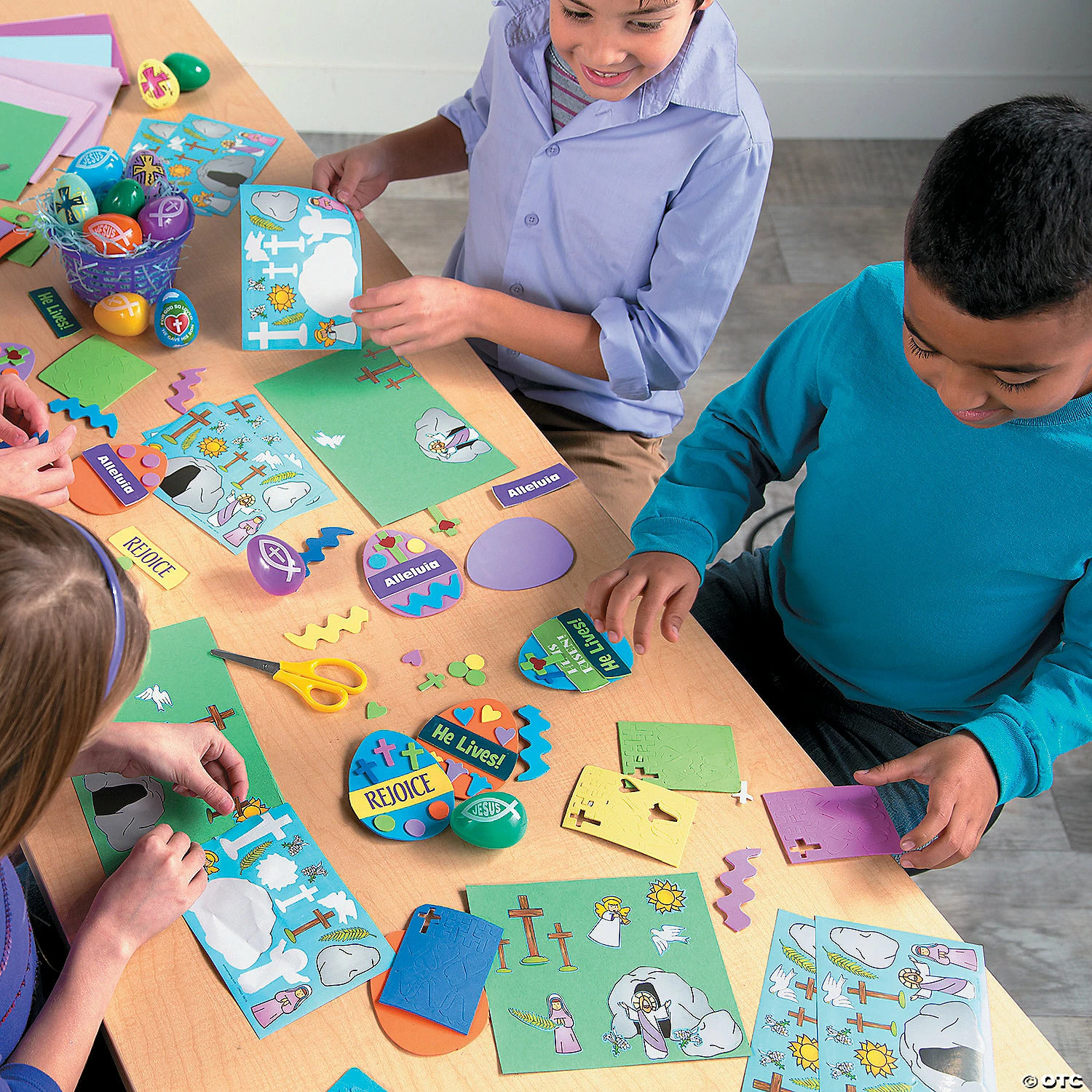 Kids will love creating their own Easter scene to show to family and friends with these inspirational stickers! Each sheet contains 14 assorted stickers featuring Jesus, Jesusโ tomb, crosses, a dove and more. These sticker scenes are a fun activity to help your Easter lessons stick during Sunday School or during VBS. Backgrounds not included. (12 sheets per unit) 3/4″ – 3 3/8″ ยฉ OTC