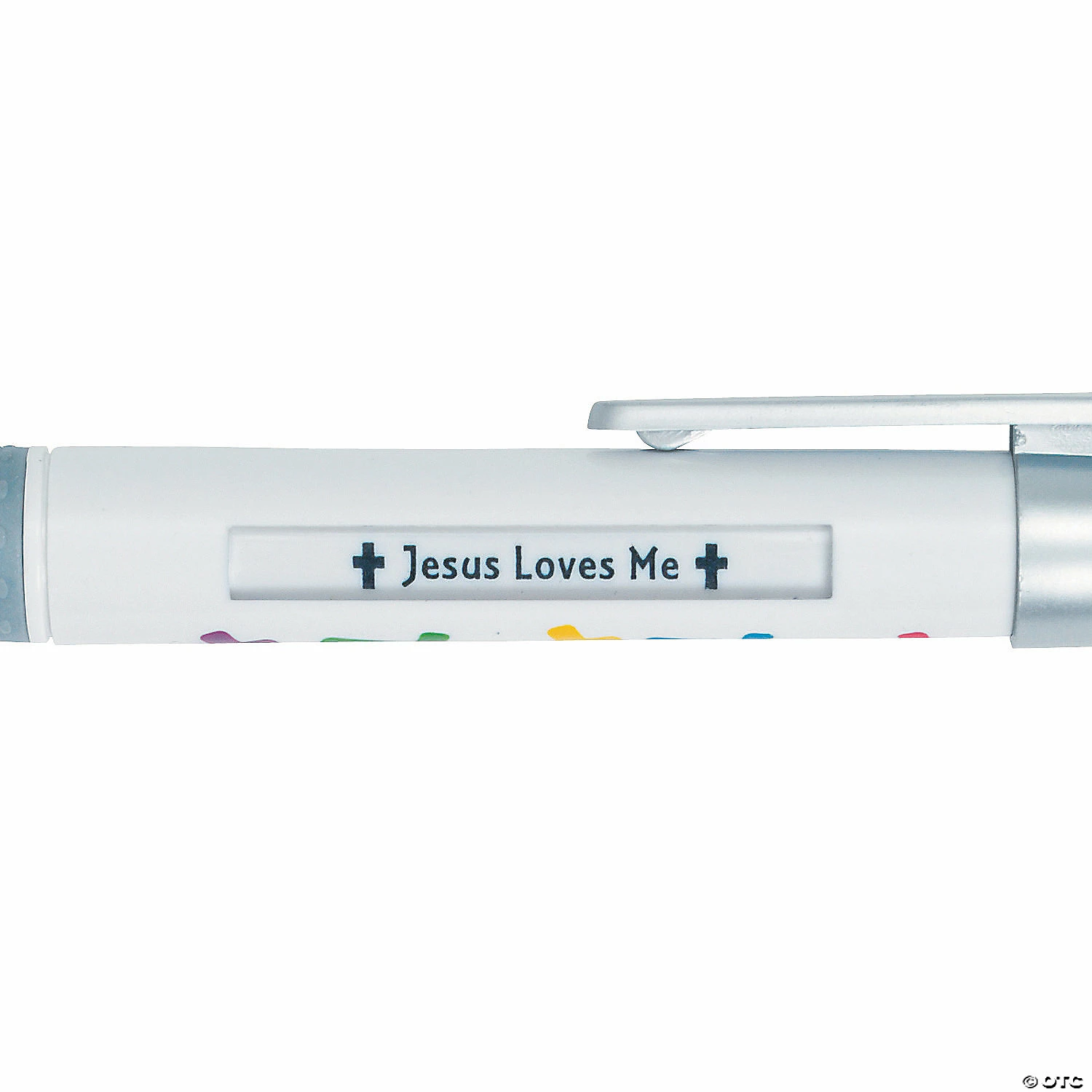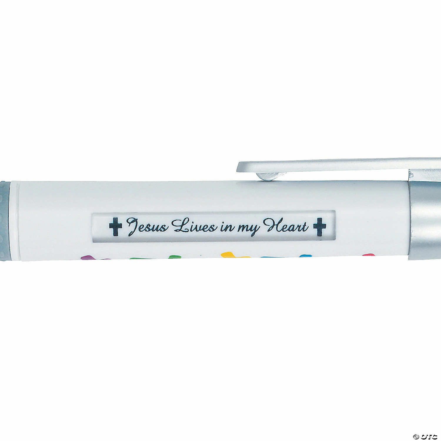 Get a new and inspiring phrase with every click of the pen! Each plastic pen includes 6 assorted messages including โJesus Lives in my Heartโ, โJesus Caresโ, โJesus Loves Meโ, โSmile, Jesus Loves Meโ, โJesus is the Wayโ and โJesus is Loveโ. 5 1/2″ ยฉ OTC