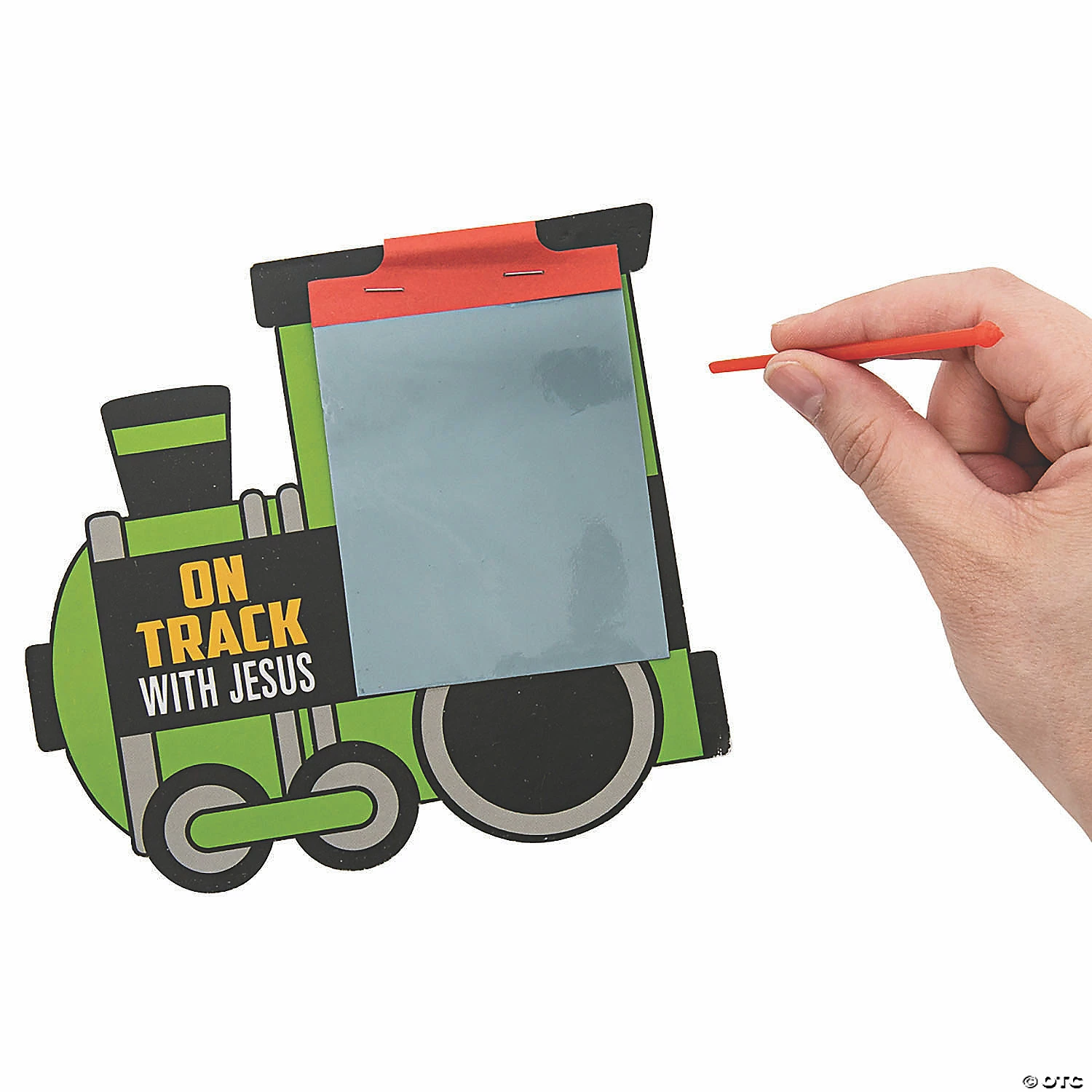 Choo-choo! You’re on your way to faith-filled fun! Made to look like trains with spiritual messages, these magic screens are a must-have for Vacation Bible School giveaways and activities. Draw, doodle, write away, then lift up the screen and watch as your creation mysteriously disappears. Sharing messages that vanish quicker than a train speeding by just got a lot easier! Paper. 6″ x 5 1/2″ with a 3″ plastic writing tool. © OTC