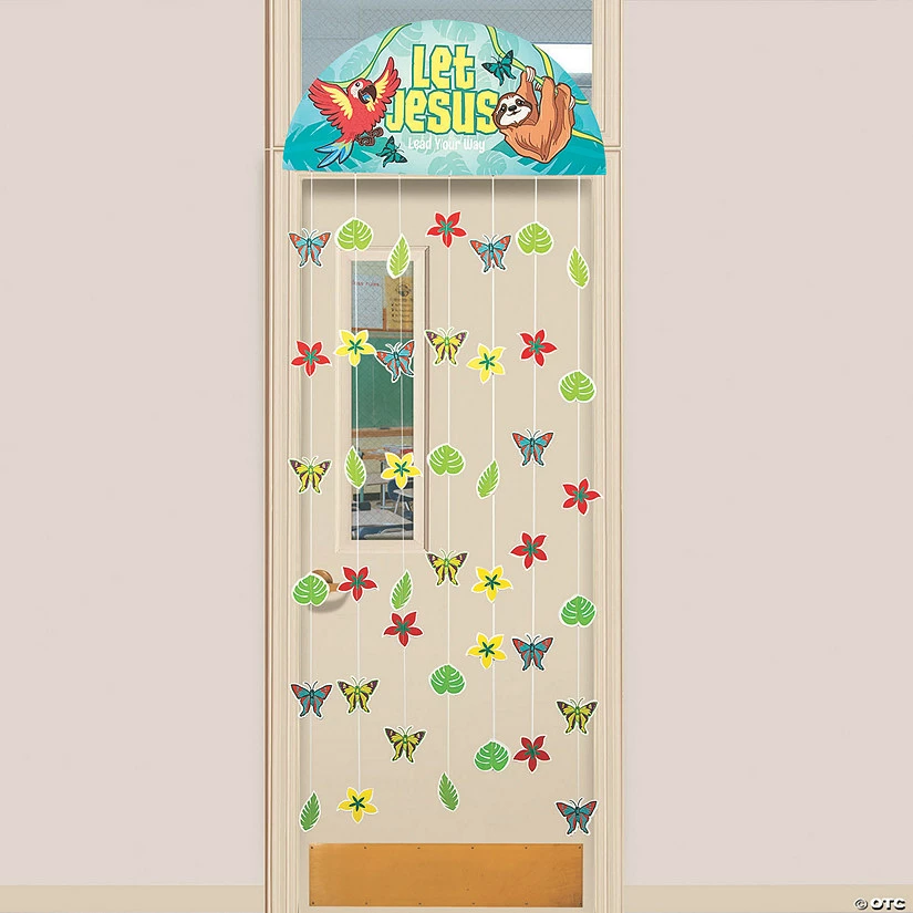 No matter what door you walk through, let Jesus lead the way! Perfect for Rainforest VBS, this door decoration takes advantage of open space to help transform your VBS area into a happy rainforest scene. The faith-filled message of the door border makes it an appropriate Sunday School decoration too! Cardstock. 3 ft. x 81″ ยฉ OTC