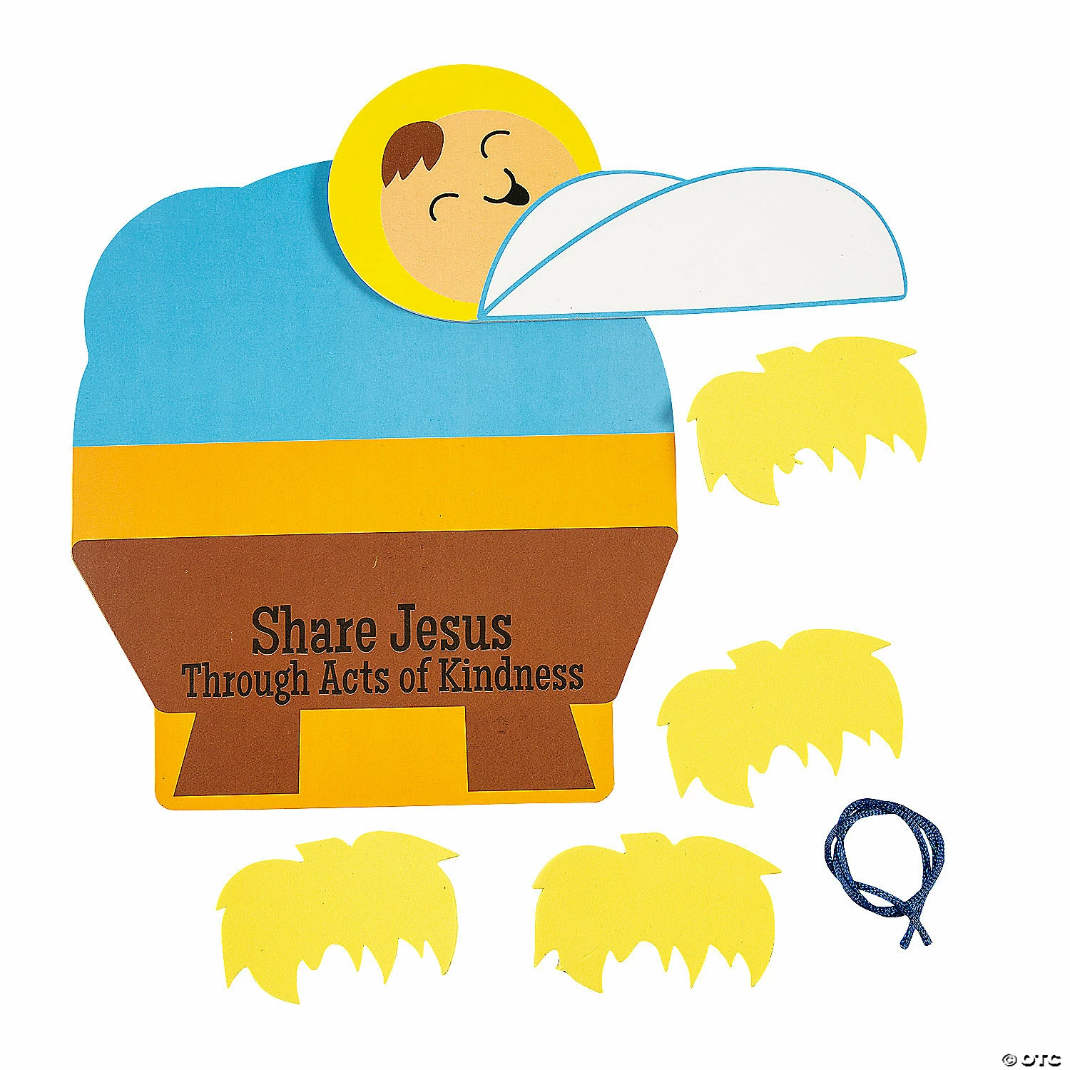 Help Sunday School kids understand that any time they show kindness, they’re sharing Jesus with others! This fun and simple craft features a smiling Baby Jesus in a manger with the message “Share Jesus Through Acts of Kindness” along with ways to show kindness. For an interactive activity, ask children to brainstorm their own ways to show kindness and then write their ideas on the foam straw pieces. A great craft to accompany a lesson on living like Jesus, this peel-and-stick craft kit will be a favorite among kids. Includes self-adhesive foam pieces and satin cording. 7″ x 7 1/2″ Makes 12. All craft kit pieces are pre-packaged for individual use. Kits include instructions. © OTC