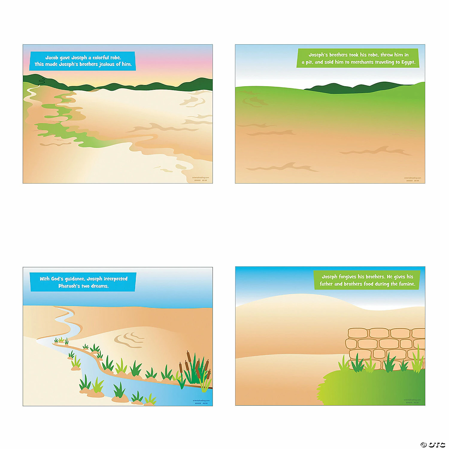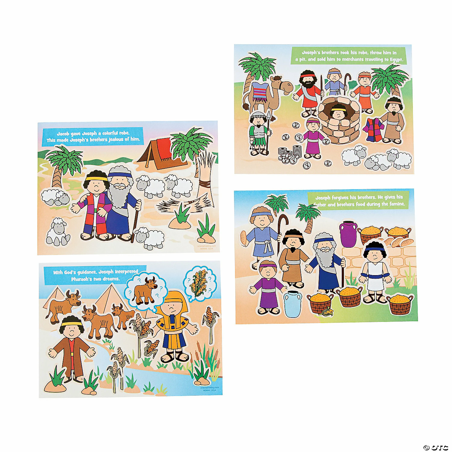 Share the stories of Joseph! These sticker scenes make great activities at Sunday School or VBS! Integrate this activity into your lesson plans to coincide with your teachings of Joseph! Includes 12 sticker sheets and 12 backgrounds for each of the 4 stories, for a total of 48 sticker sheets and 48 backgrounds. 6 1/2″ x 4 3/4″ ยฉ OTC