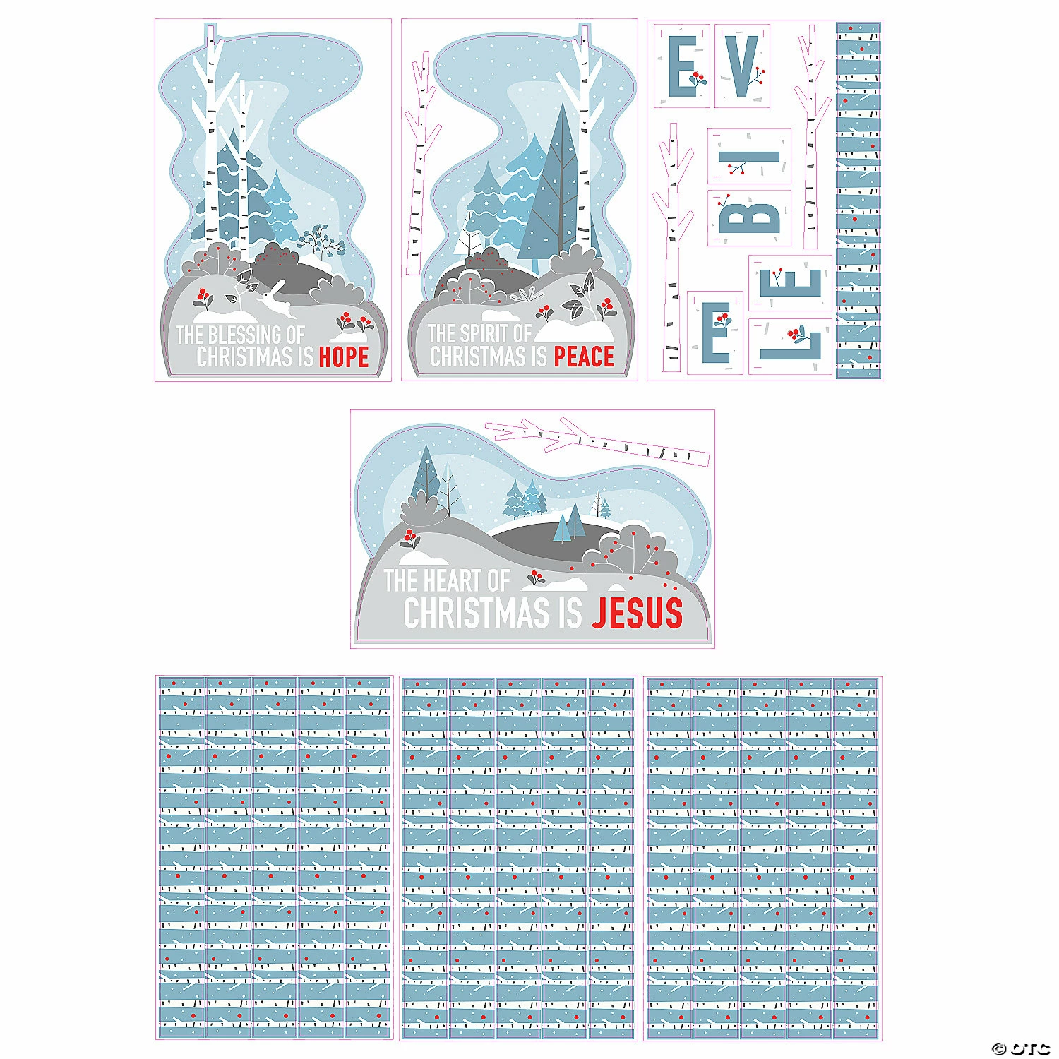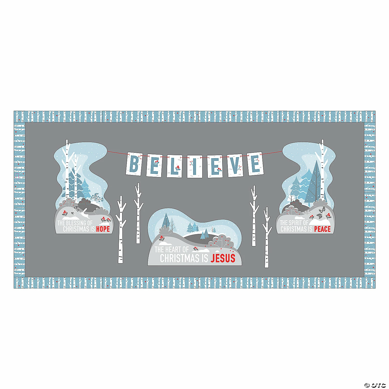 Help students believe in hope, peace and Jesus with these Christmas bulletin board decorations! Featuring peaceful wintry scenes and faith-based messages, this bulletin board display is ideal for bringing the holiday spirit to school, church or daycare settings. Cardstock. Includes 15 cutouts and satin cording. (31 pcs. per unit) Seven 17″ x 26″ sheets; 408″ total border length. Simple assembly required. © OTC